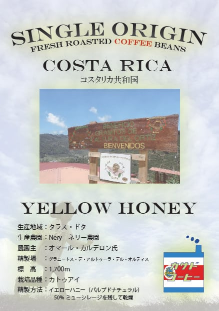 コスタリカ イエローハニー【甘味 、トロミ、微酸味】150g~