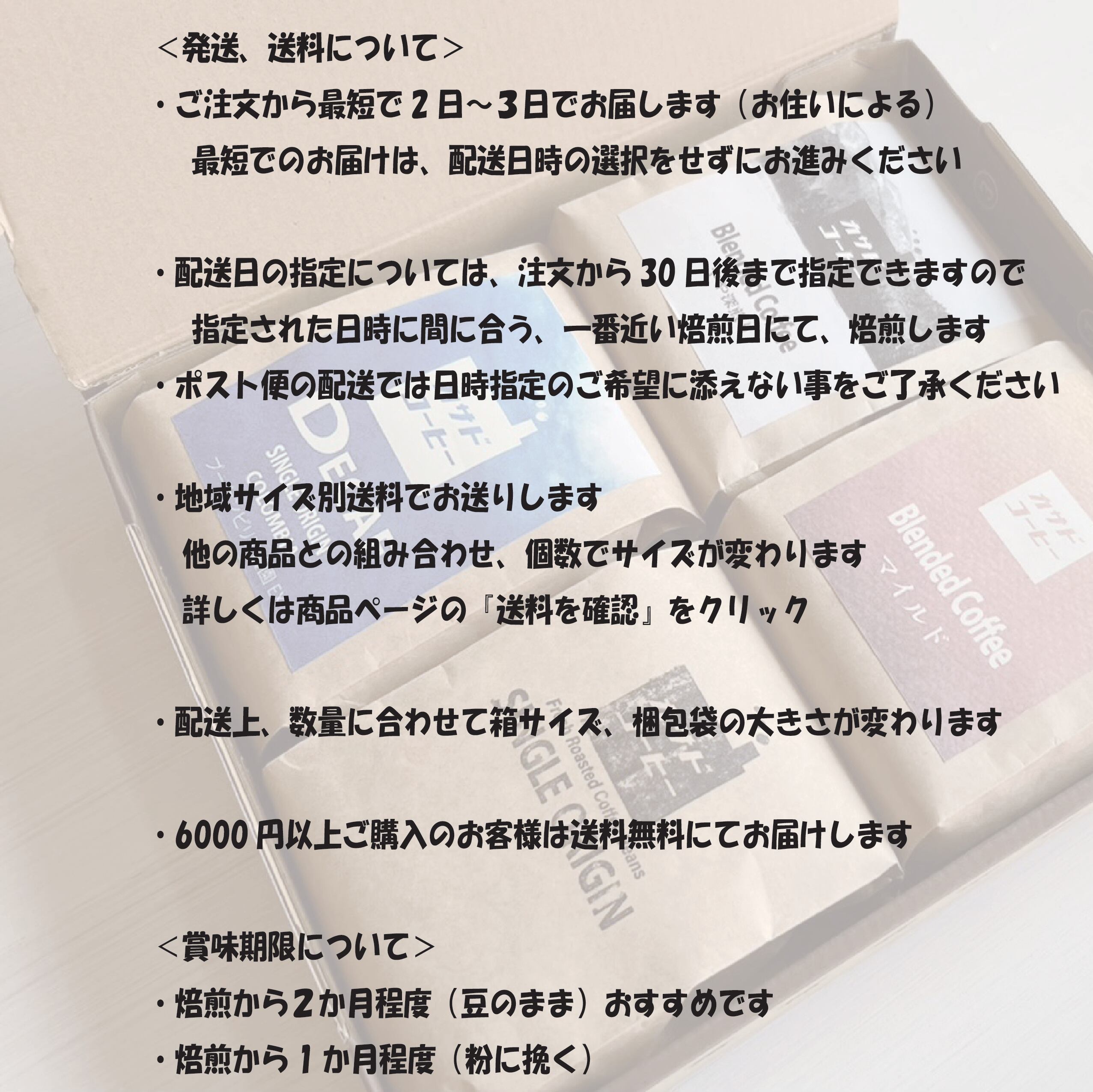 こちらの商品は、焙煎から6日以内の豆を発送いたします